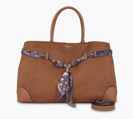 Ce grand cabas d’allure et chic et intemporel , sera un des best de la saison !! Une jolie matière textile velours suédée très tendance . Vous retrouvez un joli détail sur l’avant avec son foulard imprimé .Il sera parfait pour un quotidien bien rempli . Son volume permet un usage mixé vie pro/vie personnelle . Il est également agrémenté d’une bandoulière amovible .